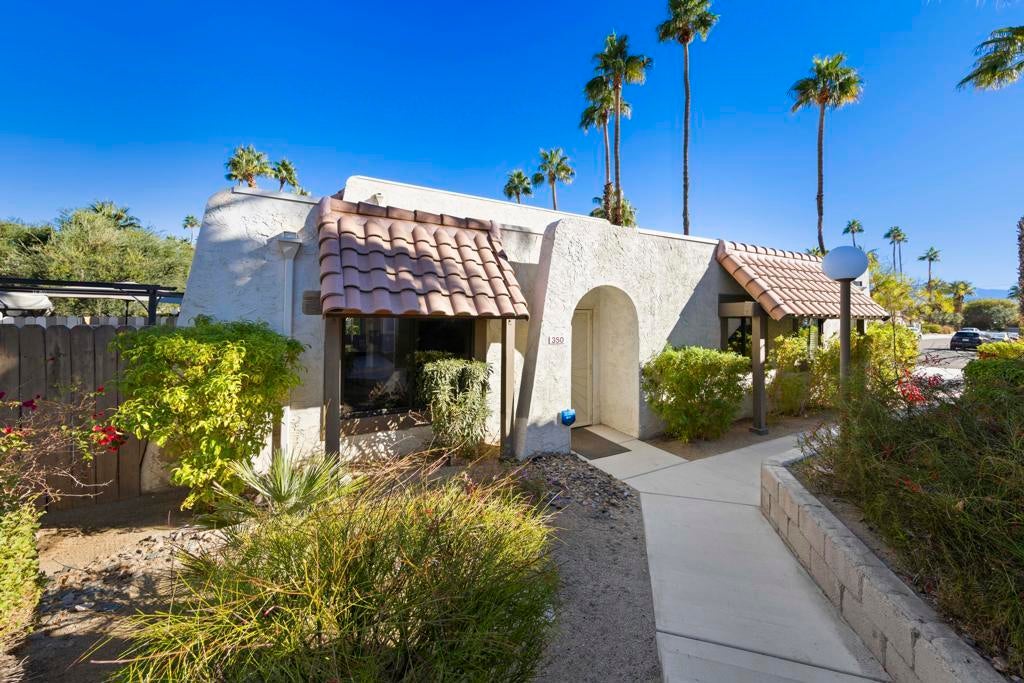 Located in the highly desirable Little Tuscany neighborhood, this beautifully upgraded single-level condo at 350 West Santa Elena Road is part of the prestigious Casa de Oro Condominium complex. Built in 1976, Casa de Oro offers a serene lifestyle with 96 units, two large swimming pools with Jacuzzis, two tennis courts, a pickleball court and ample guest parking. This 3-bedroom, 2-bathroom ground level condo spans 1,116 square feet and features an oversized private fenced back patio and two side-by-side garages with abundant storage. The current owners have made over $50,00 in upgrades since purchase including a new HVAC system, sliding doors, gray laminate flooring, refrigerator, modern lighting, ceiling fans, vanities, faucets, toilets and paint. The large patio has been fully renovated with resurfaced concrete, artificial turf and a retractable canopy. Situated on a quiet, low-traffic street, this home offers peace and privacy while being just minutes from Uptown and Downtown Palm Springs, with its vibrant shops, restaurants, and nightlife. Short-term rentals (30-day minimum) are permitted, and pets are welcome. Casa de Oro is nestled in the heart of Palm Springs with quiet surroundings and easy access to local attractions!