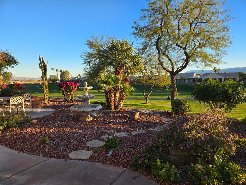 Sun City Palm Desert - St. Croix With Golf Course, Green Belt And Mountain Views. 2 Bedrooms, 2 Bathrooms Plus A Den/Office And Bonus Room. Home Overlooks A Green Belt, Golf Course And Has Spectacular Mountain Views. This Great Room Home Has Been Meticulously Maintained. The Eat In Gourmet Kitchen Is A Cook's Delight With A Center Island And Breakfast Bar. There Is A Large Master Suite, Walk In Closet & Master Bath With Dual Sinks And A Stall Shower. This Home Is Situated On A Large Corner Lot, Close To The Club House And Parks. There Is A 2-Car Garage Plus A Golf Cart Garage With Plenty Of Storage.