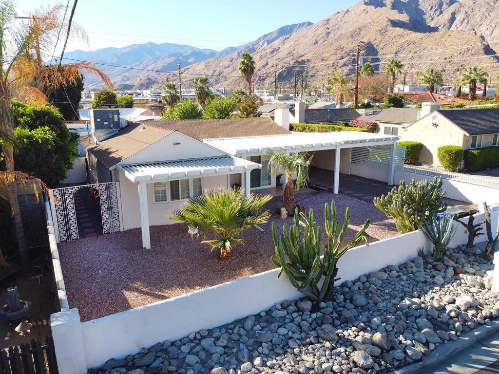Don't let this unique home pass you by!Special in so many ways.No HOA. No Condo dues. No worries about special assessments.This home is located in the desirable 'Warm Sands' area of South Palm Springs which helped make Palm Springs such a popular place to Live.Easy walk to 'downtown' and beautiful mountain views from both the front and back yards.The owner has thoughtfully planned and meticulously selected every upgrade and change made to the entire property.The homer is located on an abundant sized lot with plenty of room for a pool, room addition, possible ADU or Casita.Gated private driveway with attached covered carport.Tastefully landscaped front and back beautiful back yard with water conserving low maintenance vegetation on a timed watering system.All new plumbing from the street was installed within the past five yearsInterior and exterior painted within the last 8 years.Attached aluminum Pergolas less than 8 years old give an abundance of shade front and back.Perimeter privacy fencing.Professionally remodeled kitchen with custom Hickory Cabinets with newer refrigerator.Pantry and laundry room with newer stack washer and dryer off the kitchen.The bathroom has a beautiful custom walk in shower and 19in comfort height toilet.The second bedroom has lots of built in custom storage along with a queen size murphy bed.Mitsubishi split system with remote in the main bedroom.Double pane windows and new doors with screens make this a airy and light home.5 newer interior ceiling fans and 2 on the back patio makes this a very comfortable place to spend leisure time indoors and out.Here is your opportunity to have your very own detached single level home without the rules ,regulations and extra fees attached to a condo or PUD.