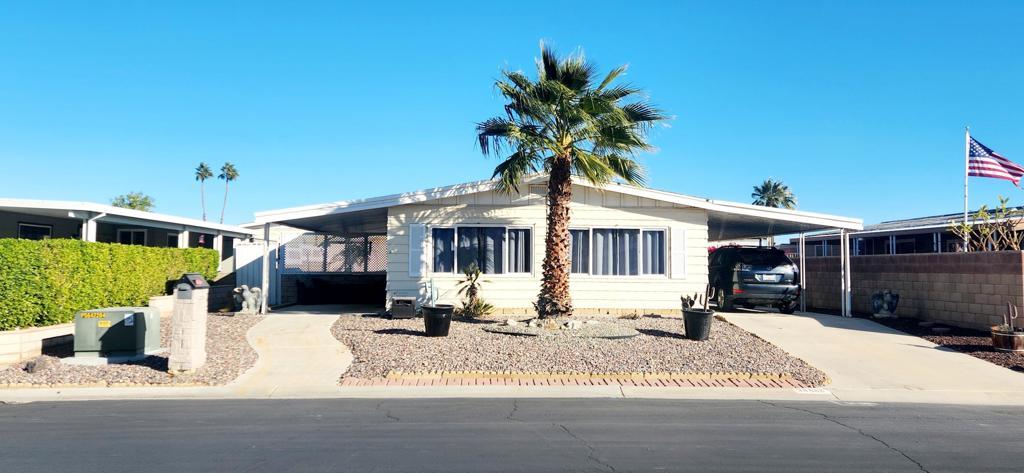 MOTIVATED SELLER! Well maintained 2 bedroom/2 bath home. You can't miss the amazing mountain view from the large dual pane windows in the living and dining areas! This homes come loaded with updates including; stainless steel appliances, laminate flooring, stackable washer and dryer and both bathrooms have been fully updated. The French doors from the family room the and main bedroom lead to a private patio where you can relax and soak in the built-in spa. This property has so much to offer and is fully furnished ready for new owners. Located in Palm Desert Greens Country Club, one of the nicest and most popular 55+ communities, nestled in the heart of the desert near many of the area's great golf courses, parks, hiking trails, restaurants, shops, and casinos. You OWN the land and the low $400 monthly HOA fee includes FREE GOLF, Cable TV, Internet, trash removal and 24/7 Guard Gate Security and so much more! A Must SEE!