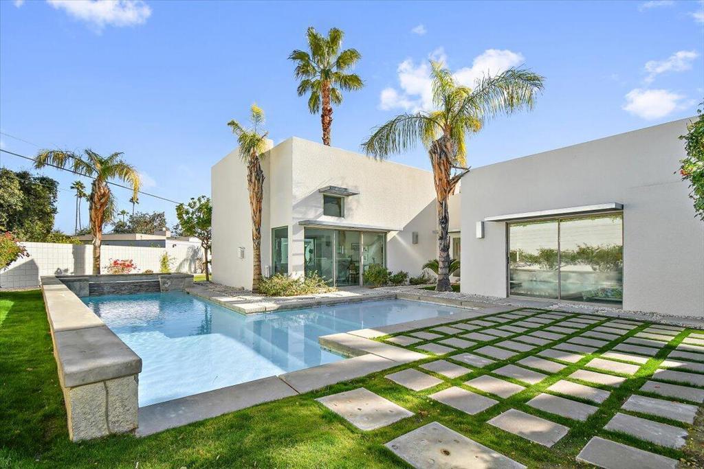 WELCOME HOME to a stunning architectural gem built in 2002 in the heart of Chino Canyon, Palm Springs. This contemporary residence spans 1,733 sq. ft. and features sleek black polished concrete floors, high ceilings, and clerestory windows. It includes two bedrooms, two updated bathrooms, a den, a newly renovated kitchen, a laundry room with a pantry, and built-in closet cabinets and shelving in both bedrooms. The expansive open living room with fireplace and dining area adjacent to the gourmet kitchen--which boasts engineered stone countertops--creates an entertainer's dream, flooded with bright natural light and breathtaking mountain views. The large saline pool with a tanning ledge and raised spa offers unobstructed magnificent mountain views, all set on a generous 12,632 sq. ft. private desert-landscaped lot. Several private outdoor patios surround the home, showcasing the stunning views. The property also includes a spacious finished double garage with ample guest parking in the private driveway and on the street. Come see and make this unique home yours!