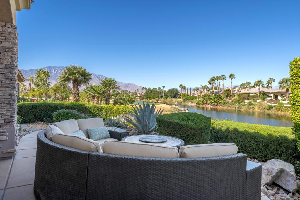 Highly Upgraded, Move-in Ready, Fully Furnished Home with Stunning Views. Owned Solar. Located on a Prime oversized, private, corner lot this home has everything you are looking for. The home is ideally situated with serene views of the 11th fairway, water features and surrounding mountains, providing a picturesque backdrop for both relaxation & entertainment. A spacious 3,224sf open layout includes 3-bedroom suites, a powder bathroom and office. The primary suite offers a luxurious spa-like bathroom, 2 walk-in closets and direct access to a private sitting patio and rear yard. Energy efficiency is a key highlight with owned solar panels and new windows & sliding doors. Inside, the home offers a spacious and open floor plan, with high ceilings, large windows, and modern finishes that enhance the natural light and views. The gourmet kitchen features stainless steel appliances, stone counters & backsplash and a large center island perfect for entertaining. Designed for ultimate enjoyment and privacy the front courtyard features a sparkling pool and spa. The owner has spared no expense with interior upgrades and extensive exterior desert landscaping. The tasteful use of natural stone features throughout is indicative of the pure quality this home is. Mira Vista is a guard gated community with low HOA dues that include pickleball & tennis courts, pool & spa plus cable & internet. This is an ideal home to start enjoying the spectacular desert lifestyle.
