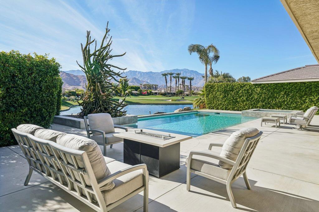 Located in the exclusive, gated golf community of Morningside, this exquisite home was once the residence of Barbara Sinatra and has since been thoughtfully remodeled to blend luxury with modern comfort. Spanning just under 3,600 sqft, this 3-bedroom, 3-bathroom home offers an unparalleled desert living experience. The highlight of the property is the beautifully renovated pebble tec pool, now featuring a sleek rectangular design with a sunshelf, spa, and panoramic views overlooking a serene lagoon, the golf course, and the stunning western mountains -- the perfect backdrop for desert sunsets. The primary suite boasts a fully updated ensuite with an oversized walk-in shower, dual shower heads, and custom finishes. The living room showcases the iconic Morningside vaulted beamed ceiling, enhancing the sense of space while capturing those majestic views. Elegant wainscotting details in the main living areas and foyer, paired with updated lighting, add sophistication to every corner. A wet bar in the living room, complete with an ice maker, is perfect for entertaining. One of the bedrooms is treated like an attached casita, with outdoor access from the private inner courtyard. This offers an ideal setup for live-in help or guests who can come and go freely, adding flexibility and privacy. This remarkable home offers an exceptional opportunity to live in one of the most sought-after communities, combining history, elegance, and modern amenities in one spectacular package.