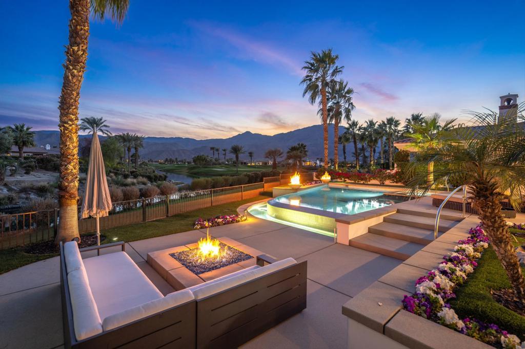 This stunning contemporary residence offers a one-of-a-kind vantage point, showcasing sweeping views of the Santa Rosa Mountains, serene lakes, the 14th green, and the 15th fairway. Perfectly situated at the end of a quiet cul-de-sac, this home offers unparalleled privacy with only one neighbor--an exceptional feature in the prestigious Andalusia Country Club. The grand entrance invites you into a thoughtfully designed open floor plan, where living and entertaining harmonize seamlessly. Floor-to-ceiling electric pocket doors blur the line between indoor and outdoor living, filling the space with natural light and offering unobstructed views of the surrounding beauty. The chef's kitchen is an entertainer's dream, featuring a separate wet bar, a wine refrigerator, sleek quartz countertops, and top-of-the-line appliances. The spacious design allows for effortless hosting and culinary creativity. Escape to the primary suite, a luxurious retreat with breathtaking views of the mountains. Complete with a fireplace and spa-like bathroom, it is designed to offer ultimate relaxation and comfort. Guests will enjoy their own slice of luxury in the private detached 2-room casita. Backyard oasis is an entertainer's paradise. Dive into the magnificent pool, unwind in complete seclusion, or gather around the cozy firepit to soak in the dramatic desert sunsets. Offered designer furnished, this home delivers the ultimate sense of tranquility, ensuring peace of mind and an unrivaled lifestyle.