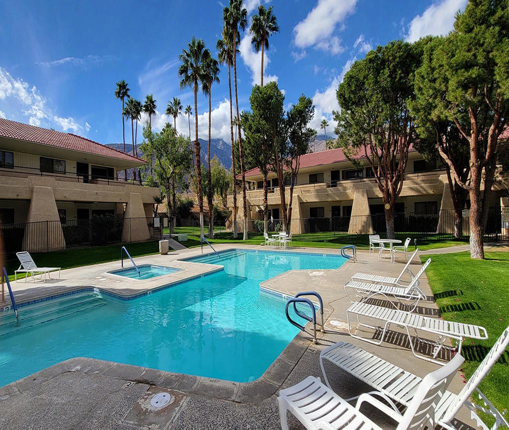 Motivated Seller will consider all reasonable offers! Discover the perfect blend of relaxation and convenience at Palm Springs Villas II, an affordable resort-style condo just minutes from downtown Palm Springs. This beautifully upgraded, fully furnished condo features a remodeled kitchen and bath, new flooring, and a smart thermostat, offering you modern comfort in a prime location. Located near world-class shopping, dining, casinos, golf courses, and nightlife, PS Villas II offers easy access to everything you love about the desert lifestyle. Inside, enjoy a bright, inviting atmosphere with upgraded finishes and spacious living areas. The gated community is surrounded by lush green spaces, towering trees, and expansive lawns: a peaceful retreat where neighbors feel like family. Whether enjoying the sun, reading a book, or playing games, you'll feel the strong sense of community defining this welcoming neighborhood. With an unbeatable combination of affordable luxury, community, and security, Palm Springs Villas II is the perfect place to live or vacation. This is more than just a home; it's a lifestyle. Take advantage of this incredible opportunity today--your desert oasis awaits!