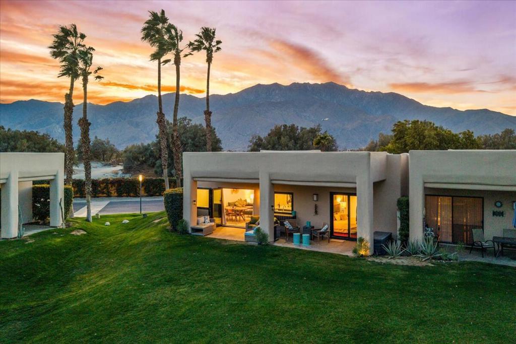 Discover resort-style living at Desert Princess in North Cathedral City. End unit with welcoming curb appeal enhanced by desert plants and gated courtyard. Recently renovated & designer furnished condo is ready for entertaining. Newer, dual-glazed low E windows & deluxe stacking sliding doors. Easy-care wood-look flooring. Open floor plan. Dramatic, oversized, floating kitchen island. Granite counters & backsplash--tons of storage & countertop space. Oversize windows frame picturesque South facing golf course & mountain views. Large patio to enjoy serene, lush greenbelt. Spacious primary suite. Gorgeous spa-like baths--unique tile wall treatment carried over into glass shower enclosures. Custom closet system. Desert Princess Country Club offers a 27-hole golf course. HOA includes social membership, tennis, fitness center, cable TV, exterior building maintenance, insurance, landscaping, 24-hour guard gate & patrol, 34-pools & spas, pickleball, racquetball, full-service restaurant/bar & spa facility. Central location is minutes from iconic downtown Palm Springs: hiking, casinos, shopping, dining, freeway close and easy access to Palm Springs International Airport. This is the IDEAL remodeled & furnished condo to call HOME. Stop searching and START living!