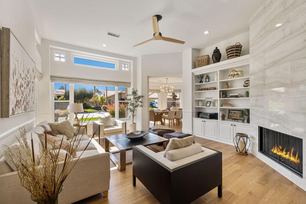 Montecito Palm Desert (nxt to Desert Willow Golf Course) Over $300K in stunning renovations make this move-in-ready Montecito gem a must-see! Shows like a NEW HOME! This beautifully updated home features luxury plank flooring, two fireplaces, and a sunlit dining room. The open-concept kitchen and family room flow seamlessly, with all-new cabinetry, quartz countertops, and high-end appliances. The stylish wet bar boasts new cabinets, a wine fridge, and a bottle washer, perfect for entertaining.Step outside to a huge, private north-facing backyard, fully fenced and pet-friendly, offering ample space for relaxation. The primary suite is a retreat, with breathtaking pool views, backyard access, and a fully remodeled spa-like bathroom featuring a Kohler soaking tub, separate shower, new vanities, and a spacious walk-in closet. Generous guest rooms provide comfort for visitors, while a dedicated hobby room offers flexibility as a reading nook, craft space, or second office.Recent upgrades include 2023 HVAC replacements and an air-conditioned 3-car garage. Located in the exclusive Montecito community, just 98 homes enjoy proximity to shopping and discounts at Desert Willow Golf Resort. ONLY 10 MIN TO EL PASEO! Experience luxury living at its finest--this home is priced to sell!