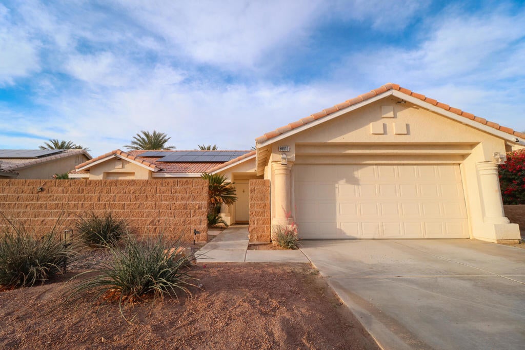 Welcome to this 3-bedroom, 2-bathroom home located in the heart of Cathedral City. Designed for comfort and efficiency, this residence features fully paid-off solar panels, offering sustainable energy solutions and reduced utility costs.The front of the property boasts a private patio area, enclosed by a tasteful wall, providing a serene space for relaxation. Inside, the living area connects to a functional kitchen, making daily living convenient and enjoyable.Outside a comfortable patio awaits your outdoor activities. With no HOA fees, you have the freedom to personalize this space to your liking.Situated in a desirable neighborhood, this property is an excellent opportunity for first-time homebuyers and investors alike. Its prime location offers easy access to local amenities, schools, and recreational facilities
