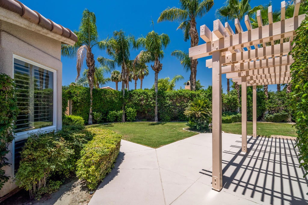 Looking for privacy away from the fairways and yet be inside a Country Club? You have just found the Ventanas! This 2,038 square feet turnkey furnished 3 bedroom 2 baths home on a large enough lot to put in a pool could be your answer you have been looking for. It features a bright and spacious great room, gourmet kitchen with stainless steel appliances, french doors leading out to the oversized yard with mature grapefruit and lemon trees. The house is fully tiled, no carpets anywhere, and the spacious 3 car garage has lots of storage space in the built-in cabinets. You have an option to join the Country Club as either Golf or Social Members or just enjoy this lovely home within a guard gated community away from traffic noise, yet close to wonderful restaurants and shopping.