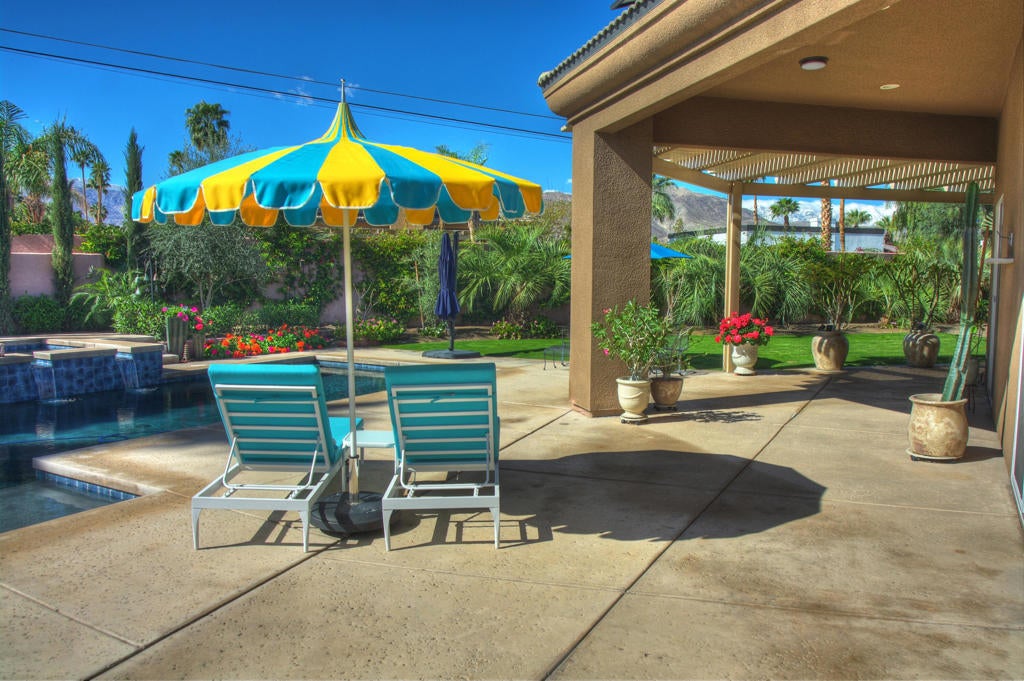 This stunning NO HOA 4-bedroom, 3.5-bathroom pool home is tucked away at the end of a quiet cul-de-sac in one of Palm Desert's most sought-after neighborhoods, just minutes from shopping, dining, and the world-famous El Paseo shopping district. Sitting on a sprawling nearly 18,000 sq. ft. lot, this home welcomes you with a breathtaking entry and gorgeous, meticulously maintained landscaping that sets the stage for luxury living.Inside, the open-concept floor plan is beautifully upgraded with high-end fixtures, designer finishes, and top-of-the-line appliances for a truly elegant feel. The resort-style backyard features a sparkling private pool, lush greenery, and ample space for outdoor entertaining. The 3-car garage is equipped with mini-split air conditioning units, while a separate Casita/ADU with a full bath offers an ideal space for guests, a home office, or a rental opportunity. Additional highlights include a private art studio/gym or office, paid solar with Tesla batteries, and generous RV/trailer parking for two large vehicles.With breathtaking mountain views, luxurious upgrades, no HOA, and an unbeatable location near El Paseo, this home truly has it all--comfort, style, and functionality in one perfect package!