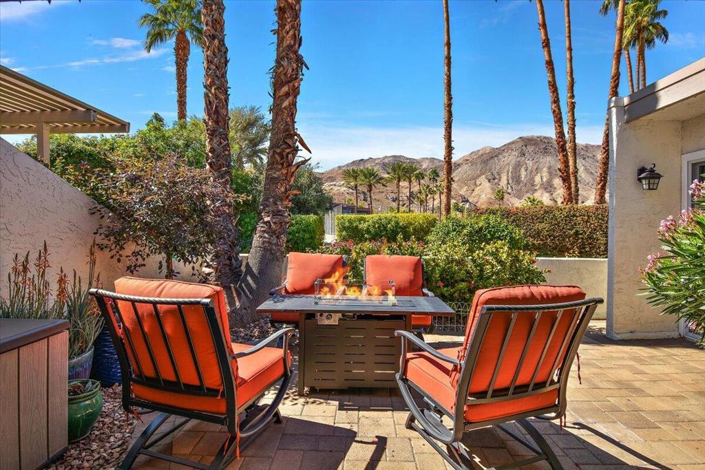 Step into your dream home in the heart of Palm Desert's sought-after mid-century modern neighborhood, designed by the iconic architect Hugh Kaptur. This beautifully maintained, with many upgrades, 3-bedroom, 2-bath condo is nestled in the historic Kings Point at Palm Desert community. It offers a rare Mills Act property tax reduction which conveys with the unit. Current owners are benefiting at a 40% reduction. Featured in Mid-Century Modern Week 2025, this architectural gem stands out as a true showpiece. The great room seamlessly opens to a south-facing patio, offering breathtaking views of the Santa Rosa Mountains - one of the best vistas in the neighborhood! Inside, the newly refinished fireplace adds warmth and character, while the kitchen with granite countertops is perfect for culinary enthusiasts. The dining area leads out to a private, spacious courtyard, ideal for outdoor dining and relaxation. The generous primary suite is complemented by a remodeled en-suite bathroom, the second bedroom opens to the South patio while the third bedroom enjoys its own private courtyard - a serene space for morning coffee or a peaceful escape. All three patios have been upgraded with elegant pavers for a refined outdoor experience. Recent updates include a newer water heater, upgraded windows, fresh interior and exterior paint, newer carpets in bedrooms, a fully remodeled primary bathroom, fireplace facelift, new pavers, and much more. The attached 2-car garage offers added convenience. Enjoy exclusive access to community amenities such as pools, spa, tennis, plus nearby hiking and biking trails. HOA includes Maintenance of the grounds and the roof (flat part excluded)Outside paint, access to teni scourt, 2 pools and a SPA.Just steps away from the world-class shopping and dining of El Paseo, experience the ultimate Palm Desert lifestyle in this one-of-a-kind masterpiece!