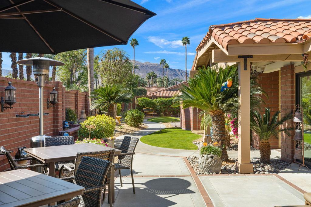 Wonderfully updated 30 Max Plan with coveted private Sideyard! Professionally landscaped, South-facing Sideyard, affords all day sun, beautiful mountain views, updated amenities, and is the perfect setting to entertain family & friends. Kitchen looks onto the golf course and features stainless appliances, beautiful cabinetry & hardware, quartz counters, and recessed lighting. Wall removed between kitchen and dining area creates flow into the living areas. Additional upgrades include neutral tile, paint and carpet, energy efficient windows & sliders, custom window coverings, updated lighting, and ceiling fans. Converted atrium adds additional square footage and includes a counter bar & cabinets. Spacious primary suite features high ceilings, dual vanities, plus an added walk-in closet. Insulated 2 car garage with work area and additional storage. 27 holes of Ted Robinson designed golf, 13 tennis courts, 20 pickleball courts, bocce, and 37 pools for your enjoyment. Centrally located in the heart of Palm Desert, Monterey CC is one of the most active clubs in the desert. Here is your opportunity!