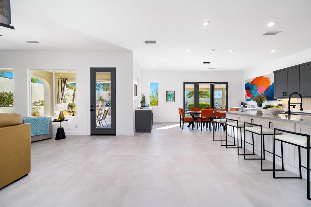 This home is professionally remodeled from top to bottom. Includes OWNED SOLAR! This stunning residence includes 4 bedrooms, with 1 currently utilized as an office. Located at the end of a peaceful cul-de-sac in a beautifully maintained community with low HOA fees, this property offers both privacy and convenience. This home is highly upgraded with modern finishes and boasts an abundance of natural light throughout. The owned solar system ensures energy efficiency and cost savings. Landscaping is pristine and completely desertscape. Yard features retractable awning and mister system. With no homes behind it, you'll enjoy mountain views and serene surroundings. Garage is cooled with mini split A/C. Whether you're entertaining guests in the expansive living areas, whipping up culinary delights in the gourmet kitchen, or unwinding in the luxurious outdoor spaces, this home is designed to elevate your lifestyle. The community of St. Augustine features a walking path, pickleball courts, tennis courts and a doggie area. Located next to the many golf courses of Mission Hills Country Club. Don't miss your chance to own this rare find! Another Licht Homes Professionally designed custom renovation. Furnishings available outside of escrow.