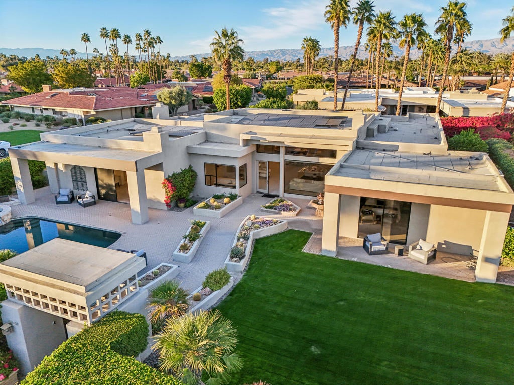 Welcome to your own mini-compound in the beautiful Indian Wells Country Club! This unique custom home has been newly remodeled and offers 4,122 square feet on a corner lot that is just under half an acre! This expansive home includes a wide open living space, a picturesque wet bar, a formal dining room, three large en-suite bedrooms AND an attached casita with its own private entrance as well as an office all with NO HOA DUES! All of these area have gorgeous views with the primary bedroom and living space looking out at majestic SOUTHERN mountain views and highlighting Eisenhower Peak. Just under half an acre, the three outdoor spaces include your own private pool and spa, a separate barbecue area, and a putting green all on an oversized corner lot with tons of privacy. Owned solar is included with approximately 51 panels to cover your electricity bills. Enjoy the benefits offered to Indian Wells' residents within the gates of this historical golf club with many member options to choose from if you are inclined.