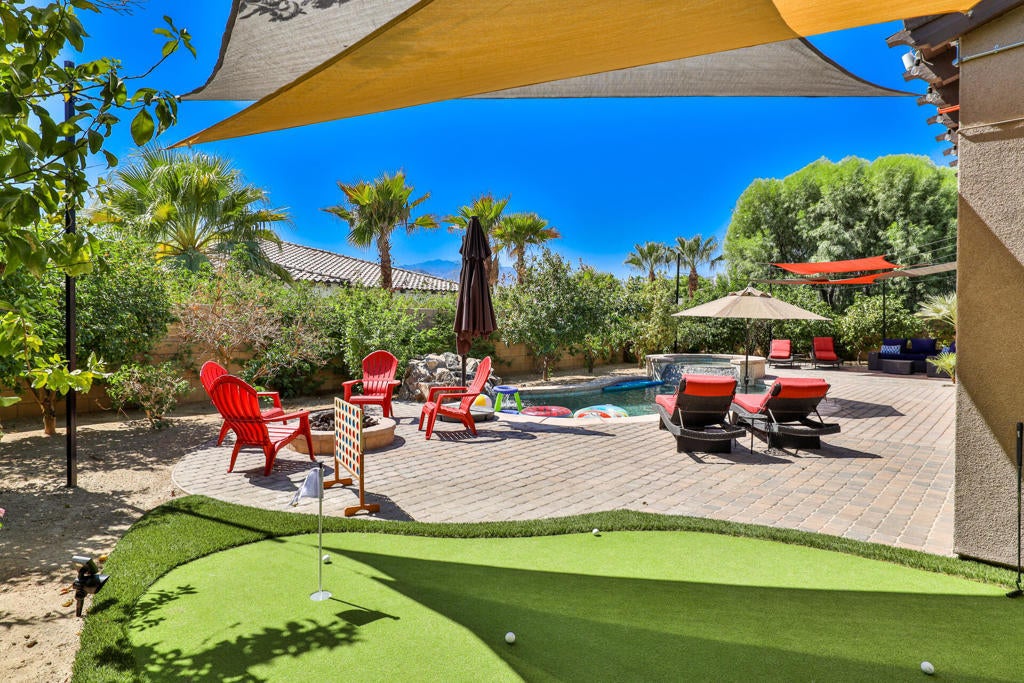 INVESTMENT OPPORTUNITY in the gated community of Montage at Santa Rosa. Large corner lot just blocks from the famous Polo Gounds featuring the Coachella Festival, Stagecoach Festival and many other events throughout the year. Short term rental opportunity with 4.92 overall rating from airbnb. This remodeled property offers 3 bedrooms and 3 full baths. Tile/wood flooring throughout, stainless kitchen appliances and granite slab counters. Resort style back yard with a private ''Pebble tech'' pool/spa, fire pit, 3 hole putting green, BBQ and an outdoor shower. Smart home with Nest thermostats, remote access codes for door entry, ring doorbell with exterior cameras plus pool/spa remote control. Additional room for guest house if needed. Garage door has been raised to accommodate higher vehicles (Sprinter Van).