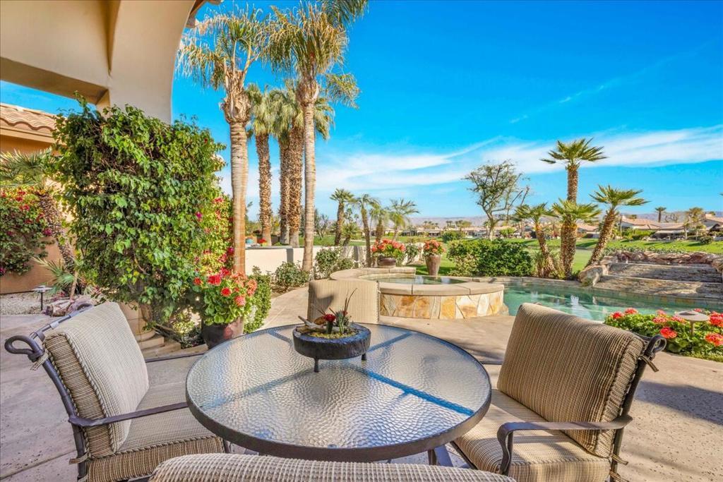 Experience unparalleled luxury in this premier golf, tennis, and lifestyle community! This first-time-on-the-market, highly upgraded Encanto 1 floor plan offers 2,635 sq. ft. of impeccable living space, featuring 3 bedrooms, 3.5 bathrooms, and a versatile bonus room/office. Step through a beautifully landscaped courtyard and custom front door into a grand foyer with soaring ceilings. The neutral tile flooring in living areas and baths, along with engineered wood flooring in bedrooms and the bonus room, provides a perfect backdrop for your personal style. Each bedroom boasts an en-suite bath and ample closet space. The great room, with custom built-in cabinetry, opens to the rear yard through 10' Fleetwood sliding doors, offering breathtaking lake and fairway views of the 13th hole of the ''Jones'' course. Enjoy outdoor living with a stunning pool, waterfall, and built-in BBQ island. 3-car garage with Clopay doors, newer HVAC, and water heater plus many other upgrades. HOA dues include 24-hour security, front yard maintenance, high-speed internet, DirectTV stream service, and a sports/social membership to Rancho La Quinta Country Club.