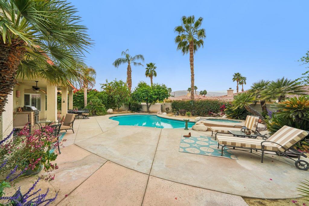 Welcome to a beautiful kept GEM in the heart of Palm Desert! Tucked away in a quiet cul-de-sac off Hovley. This 3 bedroom, 3 bath is filled with charm and style. High vaulted ceilings, an office/den, wood plantation shutters, and a stunning kitchen with stainless steel appliances makes this home stand out. The wet bar and a wine cooler, perfect for entertaining. The real highlight is the backyard!Enjoy a gorgeous outdoor living oasis with breathtaking mountain views, low maintenance desert landscaping, and plenty of space to relax or host guests. Plus, NO HOA Fees! Close to shopping, dining, golf, and everything the valley has to offer. This is a must see, don't miss out!