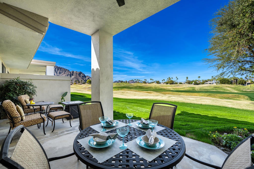 Welcome to this beautifully remodeled 2-bedroom, 2-bathroom Champion-II condo. It features a spacious den with a Murphy bed, perfect for your home office or additional living space. Enjoy breathtaking mountain views from your covered patio, where you can relax and unwind while overlooking the 15th Fairway of the PGA West Stadium Golf Course. This fully furnished home is designed for comfort and style, with plenty of natural light. The open-concept living and dining areas make entertaining a breeze, and the two-car garage adds convenience and ample storage space.Step outside to the peaceful courtyard and enjoy grilling or reading a book. PGA West amenities include a community pool and spa, perfect for year-round relaxation. You can golf at any of the three semi-public courses or join and golf all six courses with your membership.