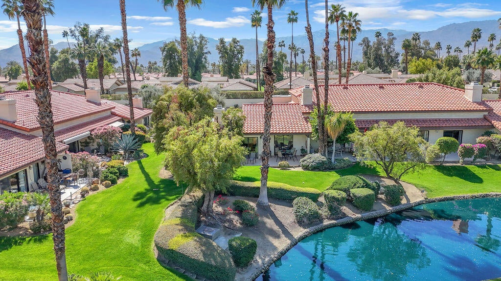 Welcome to the highly sought-after Park Palms, a beautiful gated community with only 100 units, nestled in the heart of Palm Desert. This lovingly maintained home features upgraded countertops, updated kitchen cabinets and appliances, and a combination of tile and wood laminate flooring. Situated lakeside, this 2-bedroom, 2-bathroom end unit also includes a 2-car garage. Step out onto the private patio, accessible from both the living room and the primary suite, and enjoy tranquil views of serene lakes, waterfalls, and lush landscaping that make Park Palms a true paradise. Whether you're a full-time or part-time resident, this charming condo offers the perfect sanctuary.Furnishings are included, so you can move in with ease. Park Palms boasts excellent amenities, including a clubhouse, fitness room, community pools and spas, tennis and pickleball courts, social events, and beautifully maintained grounds. The location is ideal, with easy access to top attractions such as The McCallum Theater, Living Desert, El Paseo shops and restaurants, Five-Star Resorts, and renowned golf courses like the Desert Willow Golf Resort. Don't miss out on this incredible opportunity!