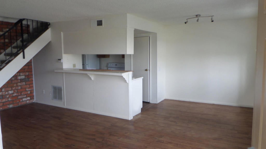 This original well cared for Condo is ready for new owner's personal touch and improvements. The Living & Dining areas are downstairs with wood plank vinyl flooring and kitchen is open with Refrigerator, Stove and Dishwasher, there is a pantry and hall closet for storage in kitchen area. This unit is one of just a few left in the Community that has its original variegated Brick wall. The stairs lead up to a Primary Bedroom with walk in closet and vanity area along with a guest bedroom which would also make a great office area. The Full Bath with Shower over Tub, has toilet and sink. This unit has shared laundry located on the Private Drive in rear of bldg as well as a deeded covered garage stall shared with another owner or tenant. There is additional storage space in garage.The Community is centrally located in the Valley and close to World Class Shopping on El Paseo Drive as well as The Shops in Palm Desert (formally The Westfield Mall). It is close to the Living Desert and the College of the Desert. Easy Freeway access North on Monterey Ave. or up the hill on Hwy 74 to Idyllwild and points West to San Diego. The 2025 HOA Fees are $399 a Mo., which includes roofs, exterior paint, landscaping, 2 pools/spas, water & trash with EQ Insurance. Currently priced to sell, check out this great opportunity and Make an OFFER TODAY!!