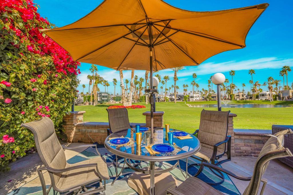 Experience the pinnacle of Palm Springs golf course living on this exquisite expanded lot nestled on the coveted back 9. Immerse yourself in breathtaking views of the verdant fairways, majestic mountains, and a shimmering fountain. Conveniently located near the El Saguaro Clubhouse, the golf starter shack, and a wealth of resort activities, this property offers the perfect blend of tranquility and convenience. Mature hedging creates a private oasis on the patio side, enhancing the sense of seclusion and relaxation. Beautiful lighting enhances the landscaping, transforming evening dining into a magical experience.Includes all patio furniture and BBQ! Outdoor Resorts Palm Springs is a Five Star RV Resort Community combining luxury with affordability. It is a guard gated resort that sits on 137 beautifully landscaped acres with 27 holes of executive golf, 10 tennis courts, 13 pickleball courts, 8 swimming pools, a fully equipped fitness center, sports bar, beauty salon/barber shop, full-service restaurant, convenience store, 2 club houses, activities, special events and so much more!