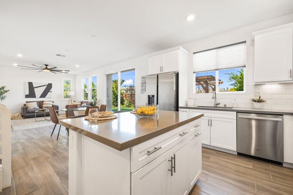 This exceptionally upgraded residence is one of the most coveted homes in University Park, set on one of the largest and most private perimeter lots--with no shared walls--offering rare seclusion and expansive outdoor space. Newly constructed in 2023, this modern 4-bedroom, 3-bath home showcases a sophisticated open-concept design that perfectly blends style and comfort.Inside, you'll find custom tile flooring throughout, elegant plantation shutters, brand-new stainless steel appliances, and an upgraded gourmet kitchen. The kitchen features a sleek quartz countertop, contemporary cabinetry, and a designer tile backsplash that adds both texture and visual appeal--creating a striking focal point in this functional and beautiful space.Additional highlights include solar panels for energy efficiency and smart-home-ready features throughout. Step into the backyard oasis, thoughtfully upgraded for relaxation and entertainment, where you can enjoy the sweeping mountain views in complete privacy.As one of the community's most generously sized lots, this home offers a sense of openness and tranquility rarely matched in the neighborhood. Located just a short walk from the clubhouse, pool, spa, lounge, dog park, and play areas, you'll have resort-style amenities right at your doorstep.And with premier shopping, dining, and entertainment--including Acrisure Arena--just minutes away, this home delivers both luxury and convenience.Note: Tax records list this as a condo community; however, this is a detached model with no shared walls and a fully private yard.Don't miss the chance to own this extraordinary property!