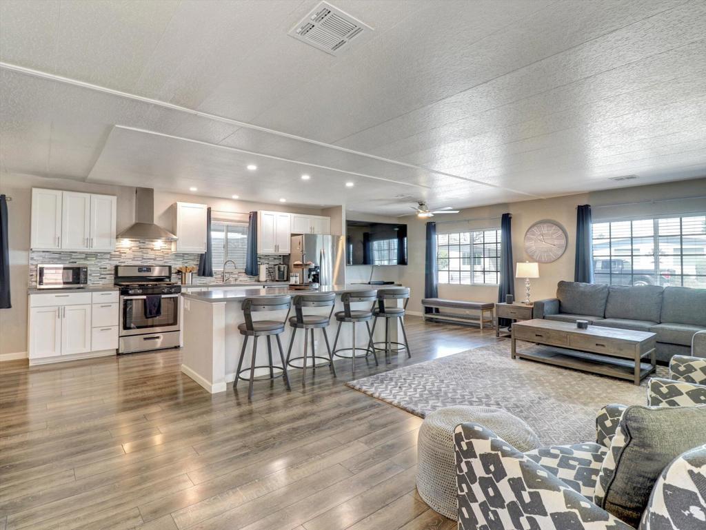 Discover modern elegance amidst desert beauty! Welcome to a home where sophistication pairs harmoniously with comforts suited for a discerning palate. This newly listed turnkey home is a testament to style blended artfully with functionality, crafted to welcome those who appreciate a refined yet inviting living space. The home has been beautifully remodeled, transforming each corner into a meticulous statement of modern living. The primary bedroom serves as a peaceful sanctuary featuring ample space and an en-suite bathroom, offering privacy combined with a touch of luxury. This 3-bedroom rarity also includes a casita with a bathroom and additional sleeping area, perfect for grandchildren visits! The living room, bathed in the soft cascade of natural light, presents a perfect environment for relaxation or hosting friends and family, highlighted by tasteful and elegant furnishings. At the heart of this home, the kitchen is equipped with top-tier appliances and granite countertops, easily flowing into the dining area for cherished gatherings. The allure of this home extends to its exterior, where a spectacular outdoor setting promises enchanting evenings and serene afternoons. The custom outdoor grill and sink are ready for your seasonal gatherings, set against the dramatic backdrop of mountain vistas. The roof is newer & professionals have refitted the piers, pads and braces of the foundation. To top it off FREE golf is included in low monthly dues. Free internet and trash pickup, clubhouse with a restaurant, bar, 18-hole executive golf course and pro shop, three community pools, hot tubs and exercise room. Add a billiard room, card room, indoor shuffle board, tennis courts, pickle ball courts, library, recreation room, and nearly 40 clubs to realize all that PDGCC offers for your perfect desert home. This incredible home won't last long! Please call for a showing.