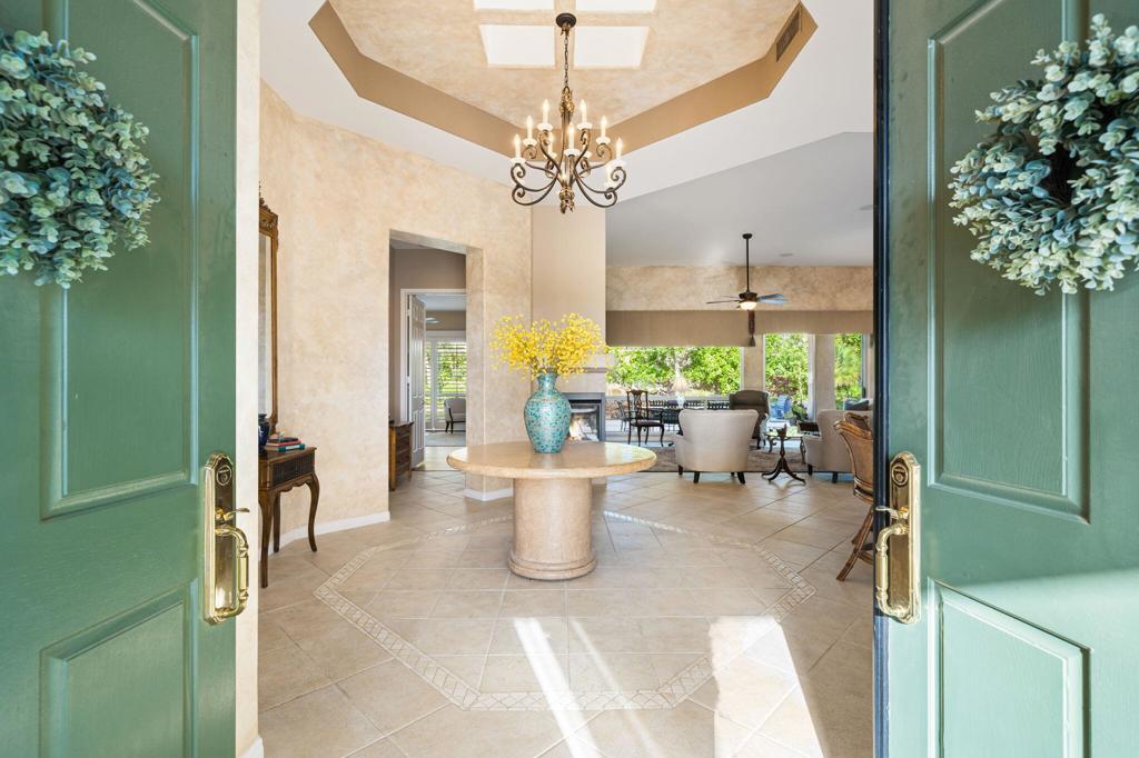 This glamourous St. Tropez model includes an entertaining bar, high ceilings and a double door entrance into the principle bedroom. The magnificent entry sets the elegant tone of the home. The spectacular yard includes two grass areas, multiple seating areas, a retractable awning and a beautiful in-ground salt water spa with a cascading waterfall.The spacious kitchen has granite countertops and double wall ovens. The principle suite has a large walk-in closet with custom cabinets. The principle bath has dual sinks, an oversized bathtub & large stall shower with a rimless enclosure. The extended second suite also has a custom closet and rimless shower enclosure. The extended 2+ golf-garage has storage, a workbench and its own AC. This magnificent home is located near the Lake View Clubhouse. Do not miss it!