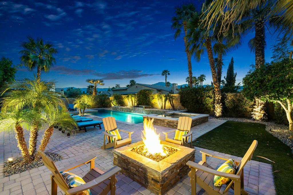 Welcome to 81739 Rancho Santa, a stunning 4-bedroom, 3.5-bath home in the exclusive gated community of Rancho Santana, La Quinta. Designed for ultimate comfort and entertainment, this residence features a southwest-facing backyard with breathtaking mountain views, a custom pool and spa, a fire pit, and a fully equipped outdoor kitchen, perfect for hosting or relaxing under the desert sky. A putting green completes the outdoor experience, adding the perfect extra touch.Inside, the chef's kitchen is a masterpiece, boasting granite countertops, high-end appliances, and custom cabinetry with abundant storage, ideal for preparing gourmet meals and entertaining guests in style.The expansive primary suite is a true retreat, featuring a cozy fireplace, a spa-like bath with dual vanities, a soaking tub, a walk-in shower, and a spacious walk-in closet.The attached casita (4th bedroom en-suite) features its own private entrance, ensuring comfort and privacy for guests. An upstairs balcony provides breathtaking mountain views, making it the perfect morning coffee or evening relaxation spot.This home is also designed for convenience, featuring a two-car garage and an oversized laundry room. For added flexibility, the third-car garage has been upgraded with A/C, creating a versatile flex space, ideal for a home gym, office, creative studio, or bunk room.Offered fully furnished, this home is move-in ready, allowing you to enjoy the Rancho Santana lifestyle from day one.Rancho Santana offers low HOA fees while just minutes from world-class golf courses, Empire Polo Club, and La Quinta's finest shopping and dining.Don't miss the opportunity to own this desert gem, schedule your private tour today!