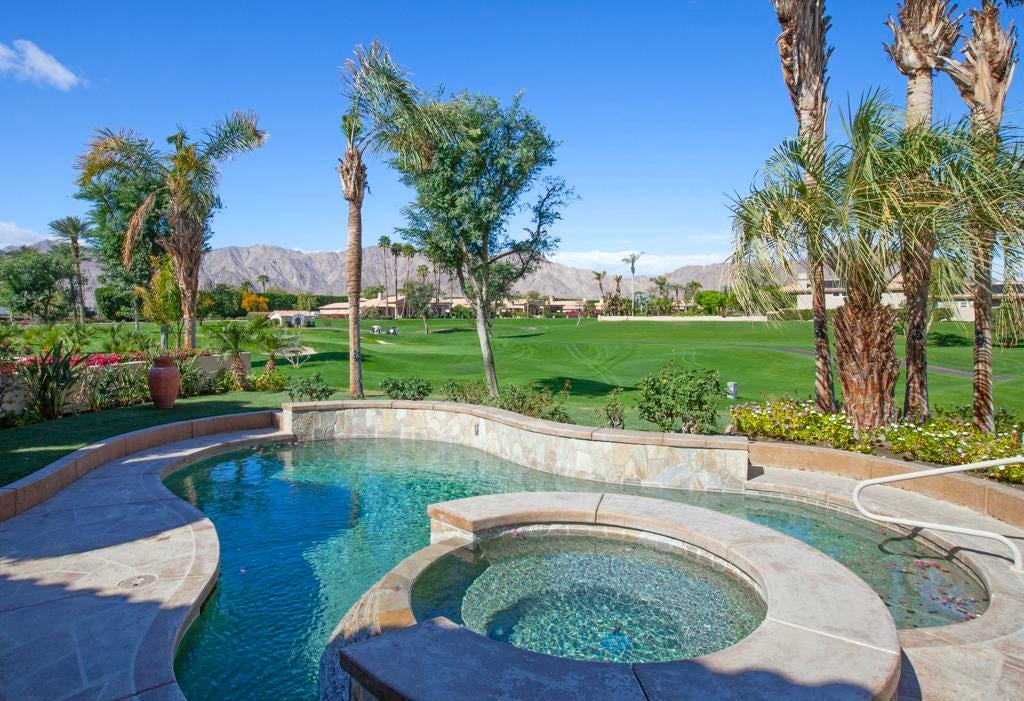 Beautiful Santa Rosa Mountain views on the 12th hole of the Robert Trent Jones Golf Course. Enjoy the views from your pool and patio. Rancho Assessment has been paid in full. This is the idyllic view and Rancho La Quinta property. Location is free of golfers and golf balls. Two car garage plus dedicated golf cart garage. Partially furnished.