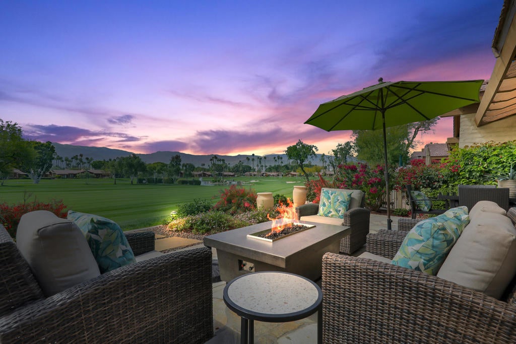 Stunning Elevated End Unit with Panoramic Views!! This beautifully renovated elevated end unit offers breathtaking southwestern views of majestic mountains, a double fairway, and serene water features. Impeccably upgraded from top to bottom, the property boasts a modern, open-concept design with seamless transitions between rooms, perfect for both relaxed living and elegant entertaining. The heart of the home is the fully renovated kitchen, showcasing creamy white gloss cabinetry paired with distinctive black drawer pulls. A chic breakfast bar with warm earthy tones and brass accents complements the sleek, subtle quartzite slab countertops. Distinctive Lighting features at the breakfast bar and dining room are classic with just the right effect of comfort. Cooking enthusiasts will appreciate the upgraded gas cooktop, making this kitchen a culinary dream. The custom herringbone backsplash adds a touch of sophistication, while gleaming stainless steel appliances elevate the space.Throughout the home, you'll find soothing ceramic tile flooring laid on the diagonal, creating a sense of flow and harmony. The entry and kitchen walls have been removed to enhance the expansive great room, offering a sense of openness and light. New windows and sliders on the front of the home allow natural light to pour in, while custom shutters add a refined touch.This home is being offered fully furnished, inviting any buyer to move in and start enjoying the lifestyle right away. With two spacious bedrooms, a versatile convertible den, and two tastefully upgraded bathrooms, this home perfectly blends comfort and style. The Lakes offers 27 holes of golf, 9 pickleball courts, 4 paddle courts and 11 tennis. 44 pools/spas, an incredible health and wellness center and the best darn social atmosphere you could imagine!