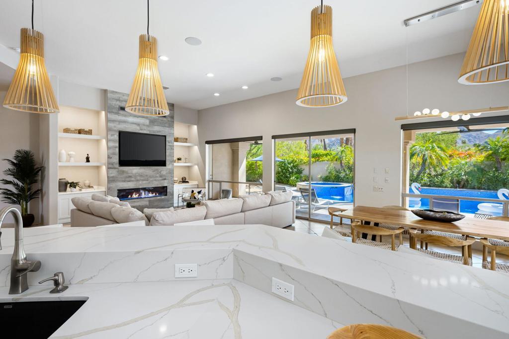 Lovely Indian Wells Retreat in Rancho Palmeras EstatesExperience the perfect fusion of comfort and efficiency in this 3-bedroom, 3-bathroom home, spanning 2,842 sq. ft., nestled in the highly coveted Rancho Palmeras Estates of Indian Wells. Designed with a thoughtful floor plan, each bedroom is strategically placed for maximum privacy.The Primary Suite is a private sanctuary, featuring a spacious walk-in closet, a luxurious jacuzzi tub, and motorized window coverings for effortless convenience.At the heart of the home, the gourmet kitchen is a chef's dream, showcasing custom cabinetry, stunning Bertoli Quartz countertops, and premium Wolf and Sub-Zero appliances--perfect for culinary enthusiasts.Beyond its elegance, this home is designed for maximum efficiency, boasting OWNED SOLAR, a new double-layer roof membrane, and two new 4-ton, 15 SEER2 BOSCH condensers, ensuring year-round comfort and energy savings.Step into the south-facing backyard, an entertainer's paradise, offering breathtaking mountain views, a cozy outdoor gas fireplace, and a fully equipped outdoor kitchen featuring a top-of-the-line BBQ, smoker, and warming drawers. The beautifully landscaped yard is enhanced by Belgard patio pavers, a citrus orchard, and a stunning glass-tiled pool and spa, creating a resort-like atmosphere.Inside, discover a dramatic 60'' living room fireplace, a custom sound system, motorized Hunter Douglas window coverings, and an impressive Nano Wall (folding glass patio door) that seamlessly merges indoor and outdoor living.Additional features include a three-car garage and sleek, modern finishes throughout.Situated in the heart of Indian Wells, this exceptional residence offers a rare combination of tranquility and sophistication. Schedule your private tour today!