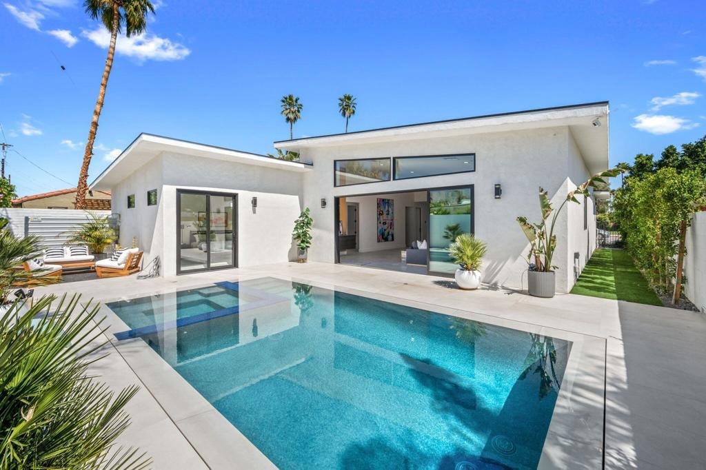 Stunning New Construction & Never Lived In! A custom-designed pool home with a private casita, set against the breathtaking backdrop of Palm Springs glamorous mountain views. top dollar spent on higher end, quality finishes. Located in the prestigious Ruth Hardy Park/ Movie Colony & just minutes from downtown's finest restaurants, shopping, and entertainment, this architectural masterpiece offers the ultimate in modern luxury.Expansive sliding glass doors open to a seamless indoor-outdoor experience, showcasing a tucked away and sheltered from the street, zero-edge pool perfect for relaxation. The true custom kitchen is a showstopper, featuring Dacor appliances, sleek cabinetry, & a spacious waterfall island--a striking centerpiece for this contemporary home.Designed for effortless elegance, the open floor plan boasts high ceilings, a linear fireplace, & an abundance of natural light. Large-format block-like porcelain tile flooring enhances the home's clean, modern aesthetic.Each bedroom is a private ensuite with custom-designed walk-in closets, ensuring both style and functionality.Additional Highlights: Fee Simple Land & No HOA! Fully Owned Tesla Solar System for energy efficiency. Private Backyard with stunning unobstructed mountain views. Furniture Negotiable.Don't miss this rare opportunity to own a sleek, modern oasis in one of Palm Springs' most sought-after neighborhoods!