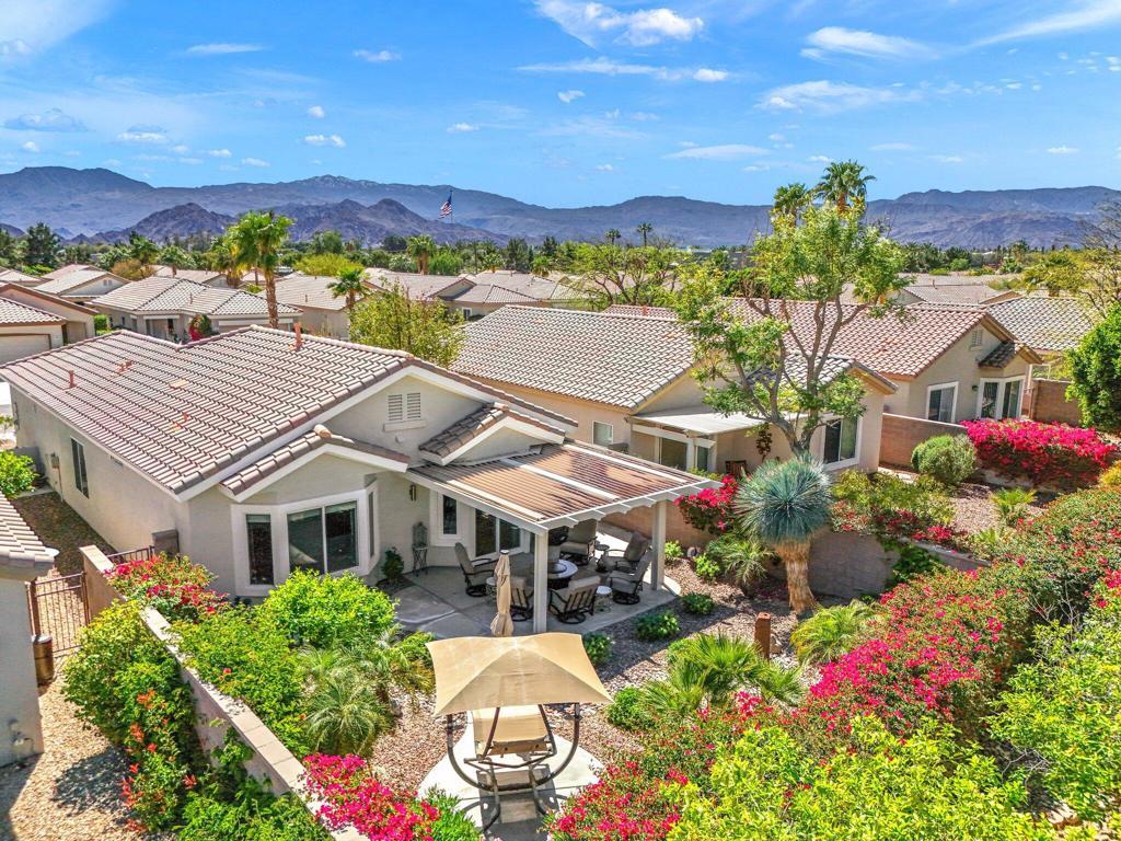 Located in the best 55+ community in the valley, this Pasadena model is one of our most popular smaller homes. It is located in a cul-de-sac close to a semi-private, heated, saltwater pool/spa, and BBQ area, exclusively for the homes in this final phase. The interior and exterior were recently painted in contemporary desert tones. The kitchen has a bay window and has been beautifully upgraded with white cabinets, soft-close hinges, quartz counters, a new sink, and pull-out shelving. They added an oversized quartz bar that fits 3 or 4 barstools, perfect for entertaining. The master bedroom has a bay window and views the charming north-facing backyard that has a soothing fountain, Alumawood patio cover with fan and lighting, and Mediterranean style desert landscaping with high quality accent lighting . The guest bedroom sporting a full mirrored closet is adjacent to the 2nd full bathroom and it is very inviting. The home has newer carpet, security system, upgraded LED can lights, and convenient dimmer switches. Both bathrooms have been tastefully refreshed as well. The large backyard has an extended patio which is private and great for gatherings. Most of the windows have been replaced. The landscaping was redone to 3/4'' PVC that'll last forever. The roomy 2-car garage has a newer washer and dryer that are included. Turnkey furnishings are available outside of escrow. Don't miss out on this gem of a home. SUN CITY PALM DESERT IS ALL ABOUT LIFESTYLE!! It has many clubs, activities, amenities, and low HOA dues. Play at 2 championship 18-hole golf courses and practice facilities, pickle ball, tennis, softball, bocci ball, 18-hole miniature golf course, an honor library, arts and crafts, a ballroom for special entertainment, and 4 saltwater pools kept at 87 degrees with hot tubs. Enjoy 2 great restaurants, a martini/coffee bar, and even a post office. It has a newly renovated classy indoor/outdoor bar with fire tables to enjoy the awesome views and our beautiful desert weather.