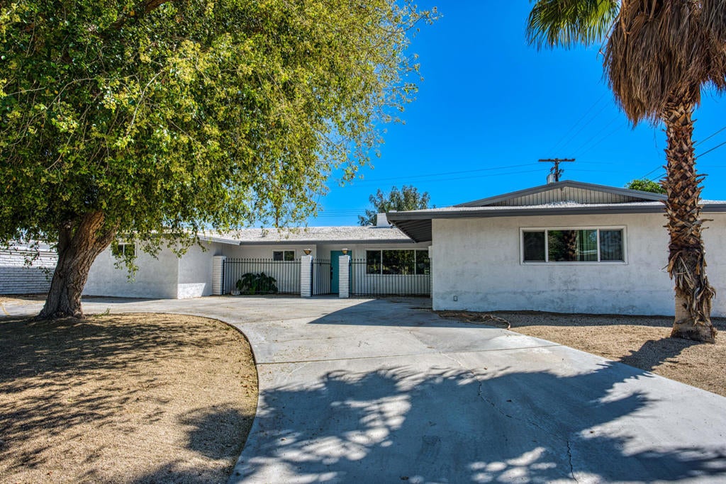 Highly Successful Short-Term Rental! This custom Mid-Century Modern home in Indio offers a seamless blend of style and functionality. Fully remodeled, it features a new pool with updated equipment, paid solar, and an open floor plan with a two-way fireplace in the living and family rooms. The sleek kitchen includes white cabinetry, stainless steel appliances, and bar seating.The home boasts two luxurious en-suite bedrooms with spa-like bathrooms, plus spacious additional bedrooms and modern vanities in all bathrooms. Recent upgrades include new exterior paint, motor, lighting, heater, and remote mobile access. Exit outside to a private backyard oasis, complete with a pool, above-ground hot tub, putting area, and covered dining space. Located minutes from Coachella and Stagecoach festivals, this home offers a prime desert retreat, perfectly suited for high-end short-term rentals. **Furnishings are available outside of escrow. **
