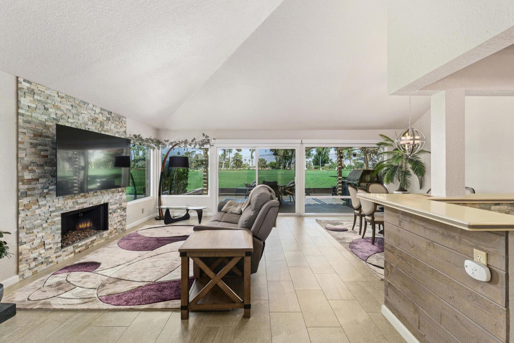 STUNNING 2-BED, 2-BATH CONDO WITH BREATHTAKING GOLF COURSE AND MOUNTAIN VIEWS!Welcome to your dream retreat! This beautifully updated 2-bedroom, 2-bathroom condo offers panoramic views of he 7th fairway, a tranquil lake, and a stunning fountain, all framed by breathtaking mountain scenery.Step inside to find newer flooring throughout including the spacious patio where you can enjoy outdoor living at its finest. The built-in Viking BBQ gas grill makes entertaining a breeze while the Aluma Wood patio cover provides shade and comfort year-round.The kitchen is a chef's delight featuring stainless steel appliances, a gas stove, refaced cabinets, recessed lighting, and a gorgeous stack rock backsplash. Custom window treatments with remote operation add a touch of elegance and convenience.Located within the gates of the highly desirable Woodhaven Country Club, this home comes with access to resort-style amenities including a full-service clubhouse, an18 hole championship golf course, 4 sparkling pools, and multiple pickleball and tennis courts.Don't delay and call me today for your own private showing.