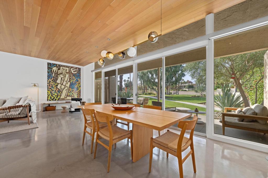 This stunning mid-century condo, designed by the renowned William Krisel, is a true gem located in the iconic Sandpiper community in Palm Desert. Featuring 3 bedrooms and 3 full bathrooms, it underwent a comprehensive remodel in 2021/2022, blending modern style with the essence of mid-century design.The home boasts high ceilings, polished concrete floors, and the signature clerestory windows in the living room that flood the space with natural light. The expansive enclosed courtyard offers a large, south-facing patio perfect for soaking in the beautiful mountain views while maintaining a sense of complete privacy. The pool is conveniently located off to the side, and the open space in front of the patio only enhances the secluded ambiance.The kitchen is a true highlight, featuring Italian Boffi cabinetry known for its sleek design and functional use of space. Top-of-the-line appliances include a Wolf double oven/cooktop, Gaggenau refrigerator, and wine cooler--ideal for anyone who loves to entertain. The floor plan ensures great separation between the primary bedroom and the guest rooms, each offering direct access to the outdoors, either to the private courtyard or the patio.The open-concept living area is designed for both comfort and entertainment, offering flexible spaces for dining indoors or out while enjoying the breathtaking desert views. A single-car garage provides easy access and convenience just outside the unit.Located just a stone's throw away from El Paseo, Palm Desert's vibrant shopping and dining hub, this condo epitomizes desert living at its finest. This property is truly a must-see!
