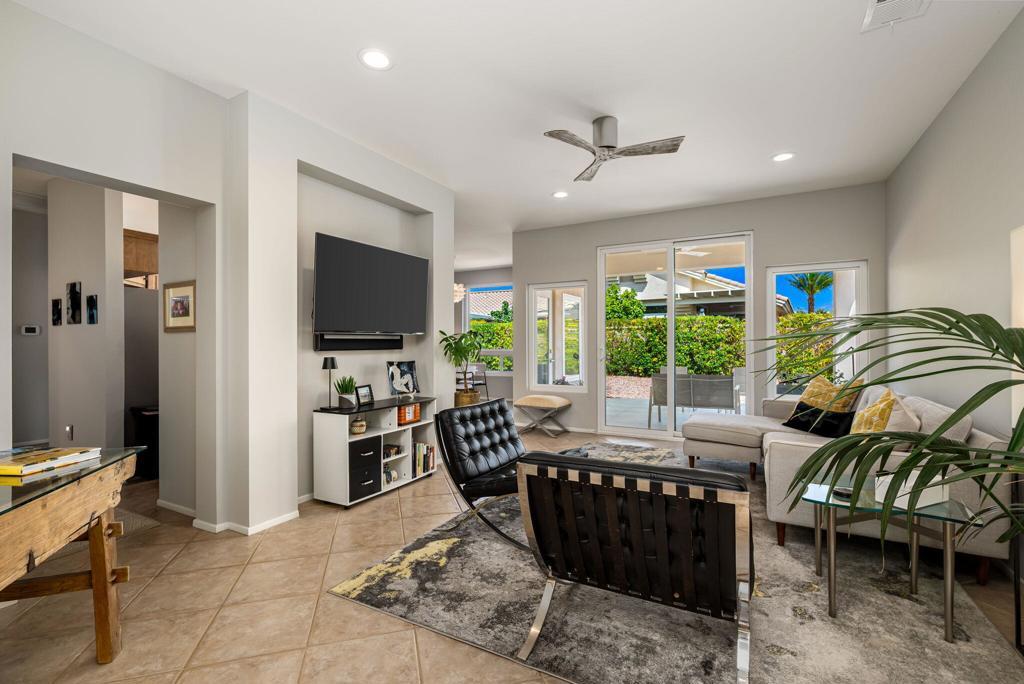 Welcome to Sun City! This single story Hummel model has been meticulously maintained andupgraded! The owner remodeled this contemporary/mid century home in 2021 making it morefunctional with no fuss living! Improvements include: New contemporary doors throughoutwith Emtek hardware, recessed lighting, new fans, sliding doors to patio with new tile, newlandscaping, all new high end appliances including a Fisher Paykel refrigerator, new kitchencabinet hardware/kitchen faucet, new air vents, electrical outlets with dimmer capabilitythroughout. This house also features all new windows!Sun City residents enjoy a wealth of amenities such as a Gated and Guarded Entry with 24-hour patrol, two 18-hole Golf Courses, three Clubhouses, on-site services like a Post Office and Business Center, multiple dining options, Fitness Centers with Pools and Hot Tubs, diverse Groups and Clubs, Dog Parks, scenic pathways, and sports facilities including Tennis and Pickleball Courts. Nearby attractions include upscale shopping destinations, entertainment venues, and the exciting Acrisure Arena for sports and concerts. Experience the best of resort-style living in this Sun City!! This is a must see!