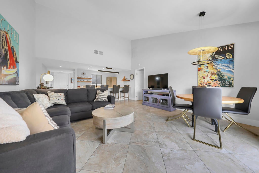 Located on the green on #13. this totally redone Vintage plan offers spectacular easterly views of the fairway, green and mountains. Enjoy that morning sun on the extended patio. The living room has smooth high ceilings, the wall has been removed between the kitchen, hallway and living room making the kitchen open and bright. The kitchen and both bathrooms have been remodeled, with granite counters and custom soft close cabinetry. Light tubes. Exciting up to the minute lighting fixtures . New window and a two car garage. Nicely furnished and ready to move in. Turnkey.