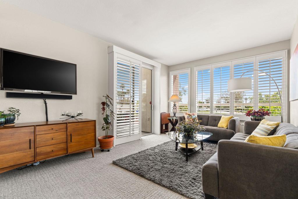 Furnished Palm Springs Condo! Welcome to this highly desirable community in the heart of Palm Springs, La Palme. This beautifully appointed upper level condo is light and bright with an open floor plan and two spacious en suite bedrooms. Highlights include high ceilings, newer upgraded carpet, crisp white shutters, and new HVAC installed in October 2024. The kitchen offers plenty of storage space and stainless steel appliances. The two primary suites have dual vanities, shower and tub and skylights that bring in a ton of natural light. The private balcony is off the living room and one of the bedrooms... giving you plenty of opportunity to enjoy the outdoors all year round. La Palme is a gated community, offering 6 pools and spas, 3 tennis courts and lush green landscape with magnificent views of mount San Jacinto. Great location with close proximity to all the dining/shopping in downtown Palm Springs. HOA includes cable/internet, water and trash. Land lease expires in 2076.