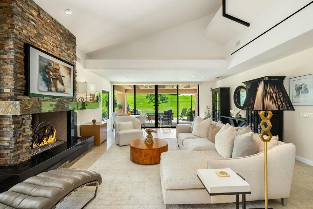 Rare opportunity for a super spacious, FREE-STANDING home (no shared walls) with an EXPANDED FLOOR PLAN in prestigious Ironwood CC! Completely renovated and in immaculate condition, this FURNISHED home is surrounded by private paved patios and beautiful lush greenbelt. Sited on an interior lot on one of the best condo streets in the entire community - a quiet, low-traffic cul-de-sac. Contemporary styling with clean lines, architectural elements, and custom designer touches throughout. Enter through a paved courtyard, custom front door and into a welcoming foyer. The open great room features vaulted ceiling, recessed lighting, electric switch gas fireplace, and lighted soffiting. Gourmet kitchen is laid out for maximum efficiency with slab granite countertops, tiled backsplash, stainless appliances, and bar seating. Beautiful custom cabinetry with convenient pull-out shelving, and very generous storage spaces. All three bedrooms have their own ENSUITE BATHROOMS and are well separated for privacy. Primary bedroom has been expanded and the bath features dual vanities, oversized designer shower, and large walk-in closet. Large family room adjacent to the kitchen provides versatility for use as a home office, TV room, den, game room, or exercise area. Zoned HVAC with one new AC unit. Outdoor patio areas are quiet, tranquil and feature interlocking pavers, built-in radiant ceiling heaters, and custom desert landscaping. Relax under the large retractable awning or stargaze next to the oversized firepit on chilly evenings. Tiled garage is super clean with lots of storage. Ironwood Country Club is a member-owned club (memberships sold separately) with two 18-hole championship courses, state-of-the-art fitness center, tennis, pickleball, gorgeous clubhouse and 5-star dining. Only minutes from world-class shopping, dining, galleries on famed El Paseo, McCallum Theater, and College of the Desert. Golf cart ride away from several golfing venues. And just 25 minutes to Palm Springs Int'l.