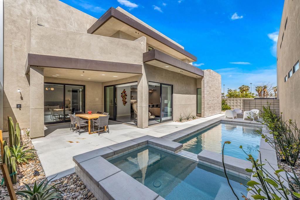 Experience luxury living in this newer construction residence located in the heart of Palm Springs! Built in 2021, this stunning 3-bedroom, 3.5-bathroom home boasts a 2-car garage with wiring for an electric car charging station, as well as an OWNED 5.1kw solar system, perfect for the eco-conscious homeowner. As you step inside, you'll be greeted by a beautiful open concept living area with fireplace that seamlessly flows into an open kitchen with custom luxury finishes and high end Dacor appliances. Entertain guests in style with the private pool, spa, and coverd dining area. Upstairs, you'll find an open loft with clerestory windows that let in an abundance of natural light and provide stunning mountain views. Electronic blinds throughout. Located within walking distance to downtown Palm Springs, you'll have easy access to all the best restaurants and shopping the city has to offer. Call to schedule your private showing.