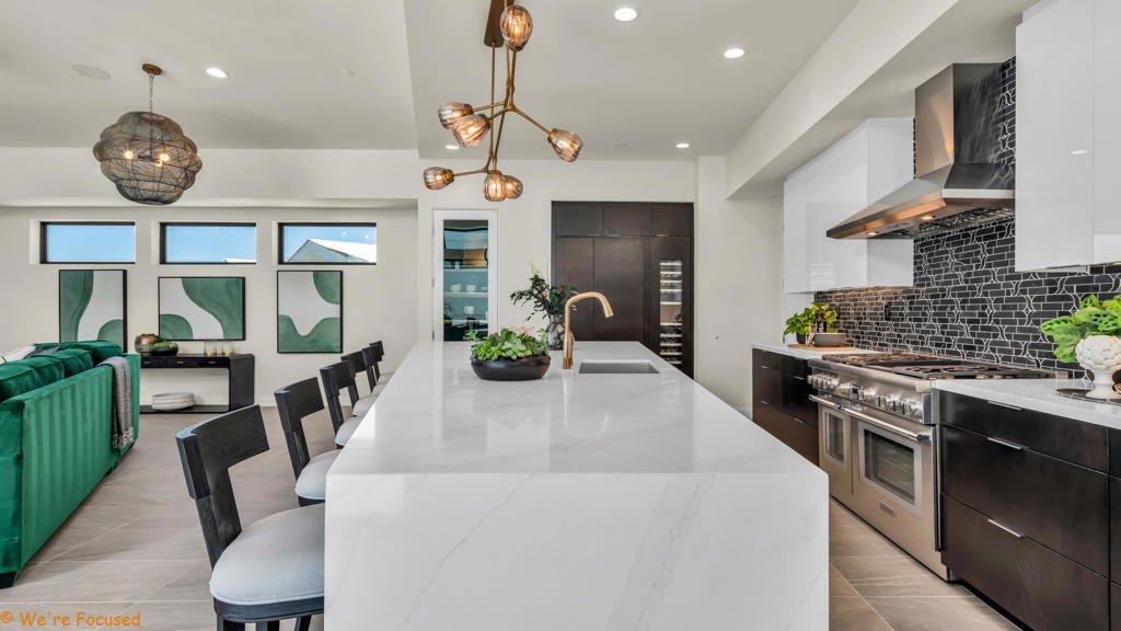 ''IMMEDIATE OCCUPANCY - MODEL HOME - FULLY FURNISHED'' At E'lan South Palm Springs. Model Home offered for the first time - live like you are on vacation in this new spectacular community that provides unmatched exclusivity, commanding UP CLOSE Mountain views and capturing the true essence of the Iconic Palm Springs lifestyle. Located in South Palm Springs practically 2 minutes in walking distance at the heart of downtown Palm Springs, with all the Finest Dinning and Shopping!! Contemporary and Modern architecturally celebrate the Famous Indoor/Outdoor Vibrant Palm Springs living experience. The uniquely designed Residence Three is a 3 Bedroom, 3.5 Baths including Detached Casita with kitchenette. Great room provides drama from every angle with a huge entertainer's great room, high ceilings and windows and 20 feet of 8' tall sliding glass pocket doors. Oversized kitchen Island that seats 8 Barstools with waterfall Countertop Island. Thermador appliances, Panel Wine Refrigerator and whiskey bar. This property is centered around a resort style Cocktail pool and Spa with waterfall, fire Feature and outdoor Gas BBQ! Move in ready with all furnishings, art, accessories and upgrades included. Single story with Master and Casita on Bottom and additional Master on Top Floor with Mountain Views. E'lan is on fee land (not lease land) with low HOA fees. 16 Panel Solar Paid For. E'lan Community has Doggie Park, Bocce Ball, Community Pool and Spa with Showers and Restrooms and BBQ Area.