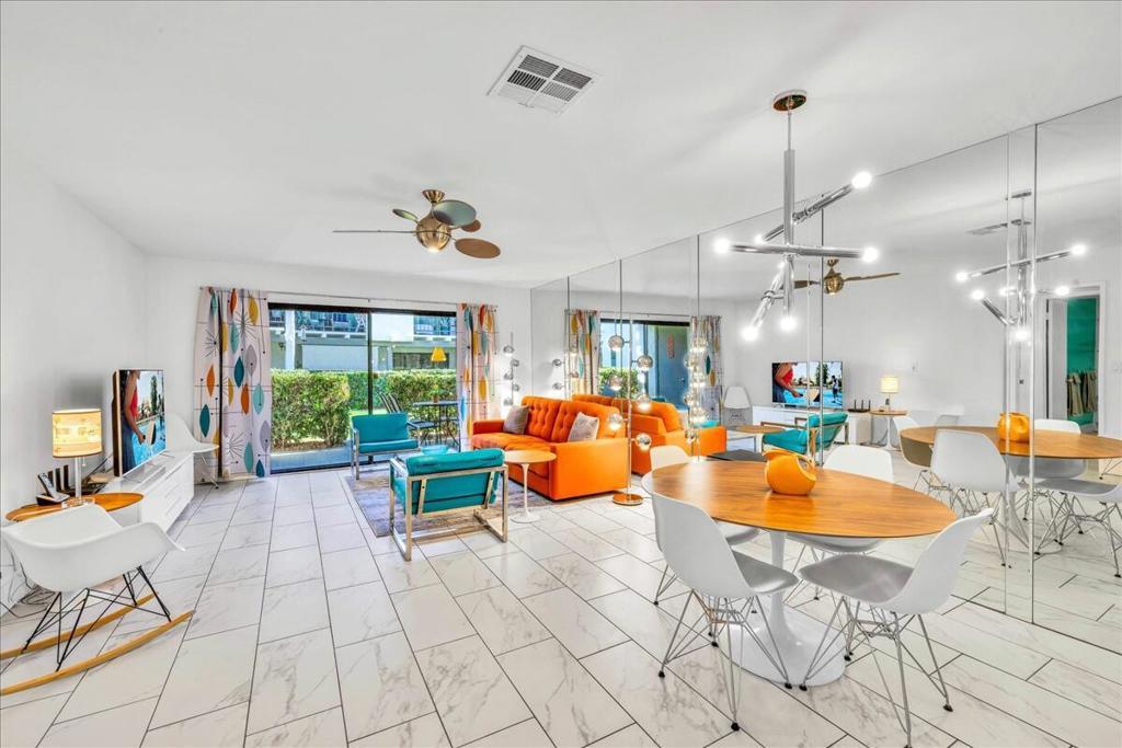 Spacious, immaculate, remodeled ground-level condo located in the well-known Ramon Estados Complex. This End-Unit offers natural light from windows on 3 sides, a private patio that has a West View of the mountains and close to the Clubhouse, Pool/Spa. Recently remodeled with new tile floors throughout and paint. Beautiful kitchen with quartz counters and an island/counter bar, that flows into the dining/living room space. Newer appliances, ensuite washer/dryer, renovated bathrooms, newer windows. Home is being sold Furnished/Turn-Keyed, everything needed for a seamless move-in! Ramon Estados, a gated Community that offers one covered parking spot, plenty of guest parking, two amazing pools & spas! Clubhouse, game-room, sauna, three tennis courts, two pickleball courts & paddle ball. Located in the Heart of Palm Springs, walking distance to shops, dining and downtown Palm Springs. With a 5 minute ride to Palm Springs International Airport. This is an amazing find at Ramon Estados!