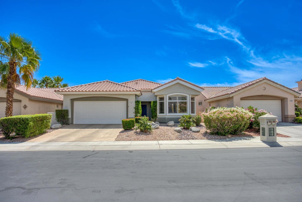 Beautifully updated and sold turnkey, this meticulously maintained 2-bedroom, 2-bath home is ready for you to move right in. Nestled in the heart of Sun City Palm Desert, it offers a bright, open floor plan filled with natural light. The modern galley kitchen features crisp white cabinetry, stainless steel appliances, and convenient barstool seating at the counter--perfect for casual dining or entertaining. The kitchen overlooks the dining area, which flows seamlessly into the spacious living room.The primary bedroom is generously sized with direct access to the backyard and a private en-suite bathroom complete with a walk-in shower. The secondary bedroom is equally spacious, and the second bathroom boasts updated finishes.Additional features include a dedicated office area, a separate laundry room, and a charming outdoor seating space--ideal for enjoying the beautiful weather. The backyard is adorned with drought-tolerant landscaping for easy maintenance and year-round appeal.Located in the sought-after Sun City Palm Desert, a gated 55+ community with resort-style amenities including golf, pools, fitness centers, and more.Buyer to pay one time HOA reserve replenishment assessment approximately $2586. Don't wait--schedule your tour today!