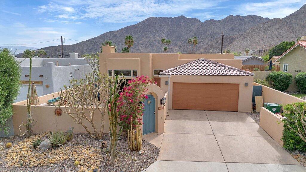 Embrace the timeless Santa Fe style charm in this exquisite 3-bedroom, 2-bath plus a versatile den/office, located near the top of the La Quinta Cove. With 1,929 sq.ft. of beautifully designed living space, this home offers the perfect fusion of comfort & modern convenience--all set against the backdrop of the stunning Santa Rosa Mountains. From the moment you enter, you're welcomed by a private front courtyard oasis featuring a newly resurfaced pebble tech pool & spa, complete with LED color-changing lights--an idyllic space for soaking up the sun or relaxing beneath the stars. Step inside and be greeted by 10-foot ceilings & large windows that flood the home with natural light, creating a warm & inviting atmosphere throughout. The heart of the home is the open-concept living area, where a cozy fireplace anchors the spacious living room--perfect for quiet evenings. The adjacent chef-inspired kitchen is outfitted with stainless steel appliances, a stylish breakfast bar, and plenty of counter space, seamlessly connecting to the dining & sitting area. The primary suite is a true sanctuary, offering a generous walk-in closet, tile shower and French doors that lead directly to the tranquil back patio. Each bedroom features a ceiling fan for year-round comfort, while the additional den or office provides flexibility for working from home or hosting guests. The outdoor living spaces continue to impress with a BBQ area on the back patio--ideal for al fresco dining and entertaining--while mountain vistas provide a breathtaking backdrop from nearly every angle. The epoxied 2-car garage features built-in storage & plenty of room to tinker. Set just steps from some of the area's most iconic hiking & biking trails, parks, tennis courts, shopping, dining, & all the charm of Old Town La Quinta, this home places you in the heart of it all while offering a serene escape from the everyday. Whether you're looking for a full-time residence or a seasonal desert sanctuary, this Santa Fe-style home delivers style, space, and spectacular surroundings. Call to schedule a viewing as this home will not last long.