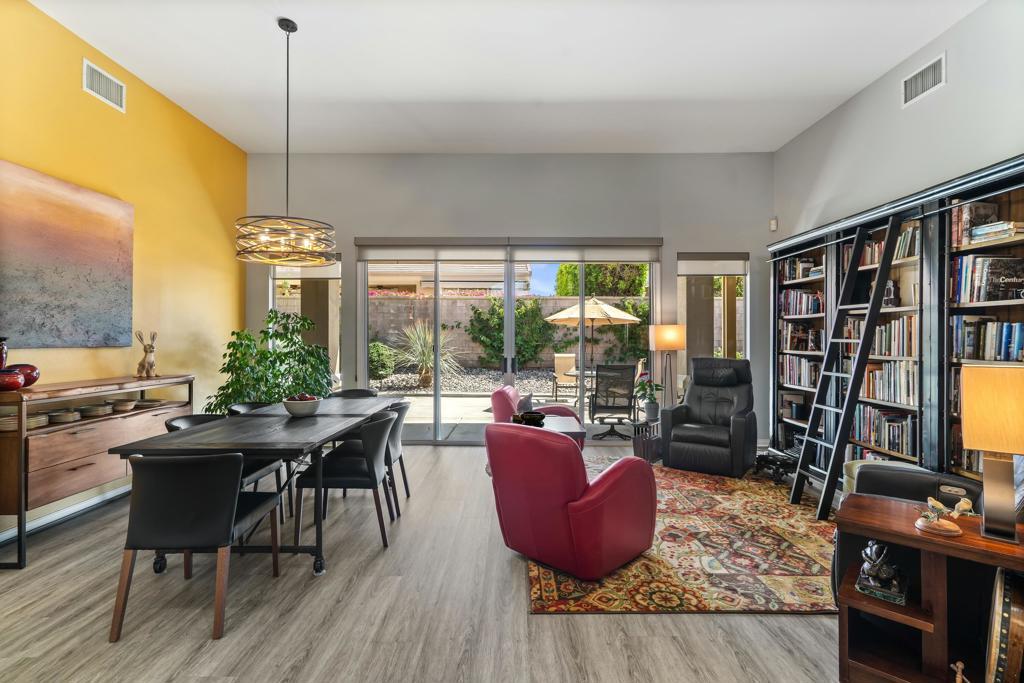 Del Webb - Sun City Palm Desert Discover the highly sought-after Monaco floor plan in this beautifully maintained home, featuring three bedrooms, a bonus casita room and two and a half bathrooms--perfect for enjoying the desert resort lifestyle. Enter through the gated courtyard and double doors into the expansive living room, which boasts wall-to-wall windows and sliders that provide scenic and serene views with easy access to the back patio and yard. The home is adorned with wood-look laminate flooring throughout, creating a cohesive and inviting atmosphere. The kitchen is equipped with a large prep island that includes a breakfast bar, gas cooktop, an abundance of cabinets, a pantry and a new refrigerator--all complemented by a window overlooking the tranquil yard. It flows seamlessly into the family room and breakfast nook, which also offers direct access to the rear yard. Retreat to the primary suite, a spacious personal haven featuring a large tub, a separate shower, a walk-in closet and dual sinks with a convenient sit-down vanity. The second bedroom is perfect for guests, complete with a full bathroom nearby and has an additional room with a private entrance which can serve as a casita. The third bedroom is currently utilized as an office and is located away from the other bedrooms for added privacy. The laundry room is functional and well-equipped with a utility sink, a folding area and ample storage cabinets. Additionally, the two-car plus a golf cart garage, provides extra storage space. Enjoy the lushly landscaped backyard, designed for privacy and ease of maintenance, featuring artificial grass with mature trees and a covered patio. Notably, both HVAC systems were replaced and upgraded in 2020, ensuring comfort year-round.