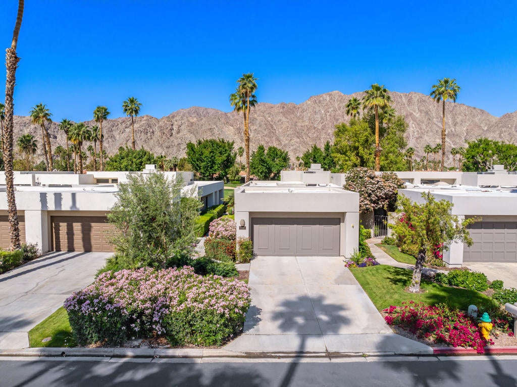 This charming Champion 3 Floor Plan ( 1,627 sq ft) located on the 8th hole of the Palmer Private at PGA WEST has exceptional views of the night lit Santa Rosa Mountains! This terrific plan hosts 3-bedrooms, 2-bathrooms and is packed with amenities designed for comfort and leisure. As you step inside, you'll be greeted by bright, airy spaces enhanced by soaring 13 ft ceilings. The living area features a stunning stone fireplace installed in 2023, perfect for cozy evenings. The built-in bar with a beverage fridge is ideal for entertaining guests. The remodeled kitchen is a cook's delight with a gas range plus upgraded cabinets and stainless steel appliances. Other enhancements include plantation shutters, new Wi-fi controlled thermostat and keyless entry system, adding convenience to your lifestyle. In 2022, a new AC was installed, keeping the home comfortable year-round, and a new water heater was added in 2024. Venture outside to discover a space crafted for relaxation. Relish in the mountain views and breathtaking sunsets from your private outdoor area. Enjoy cooking outdoor meals while entertaining family and friends with your new Weber gas grill which was installed in 2023. This condo is move-in ready and sold turnkey furnished per inventory.