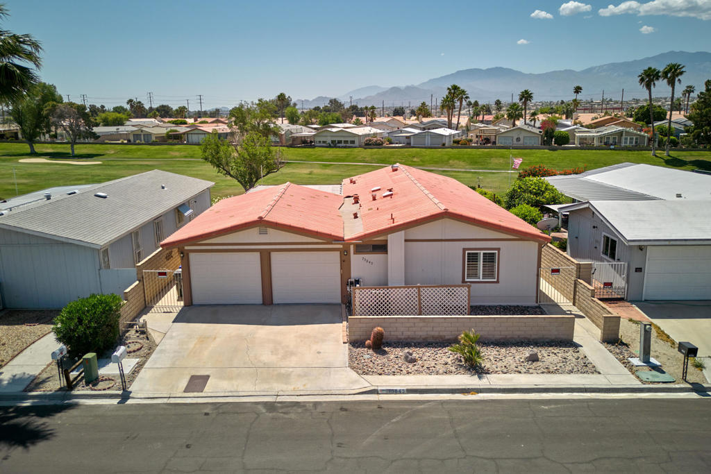 Discover the ultimate in 55+ living with this stunning and updated golf course home located in the popular Tri Palm Estates & Country Club. Nestled alongside the picturesque 5th fairway of the 18-hole course, this home boasts exquisite luxury vinyl plank flooring throughout and an abundance of natural light, enhanced by windows on all sides, custom plantation shutters, and skylights. IT EVEN INCLUDES THE PERMANENT FOUNDATION & FORM 433A FOR EASY FINANCING! Enjoy the convenience of a spacious walk-in pantry and an expansive covered patio that showcases breathtaking panoramic views of the mountains and golf course. The oversized attached garage is a true asset, providing ample parking for two cars, a golf cart, and offering additional storage and a workbench for your hobby needs. With fresh exterior paint, this home is ready for you to move in and make it your own. Venture beneath the home to discover a fully finished basement that presents endless possibilities--perfect for a craft space or additional storage to fit your lifestyle. Tri Palm Estates stands out as an active 55+ community where you own the land, and where ownership includes incredible perks such as free unlimited golf on both the 18-hole and 9-hole par-3 courses, access to a putting green, refreshing swimming pools and spas, tennis, pickleball, basketball, shuffleboard, and the community clubhouse, which features a banquet room, bar, restaurant, billiard room, and free Wi-Fi. Located just moments away from Costco, Home Depot, the Agua Caliente Rancho Mirage Casino, the Eisenhower Medical Campus, and Acrisure Arena--home to exciting professional hockey games and world-class concerts--this community is perfectly located for your convenience. With easy access to I-10, you're only minutes away from a wealth of shopping, dining, and entertainment in Rancho Mirage, Palm Desert, and downtown Palm Springs. Embrace an unparalleled lifestyle in a vibrant community that has it all!