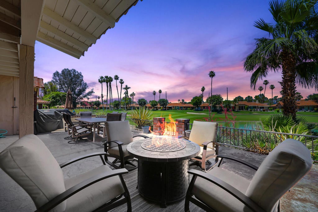 Rare Lakefront Gem in Monterey Country Club - Fully Furnished & Move-In Ready! Discover this exceptional residence, tucked away in a quiet cul-de-sac in the prestigious Monterey Country Club. This completely renovated home is priced below the competition--you couldn't duplicate this level of renovation at this price today. Understated and undeniably the best value in the best location!Enjoy elevated, unobstructed views of the Ted Robinson-designed golf course and tranquil lakefront setting. The beautifully landscaped entry welcomes you into a warm, inviting space where comfort meets sophistication. The expansive great room features soaring vaulted ceilings, creating a dramatic, airy feel perfect for both relaxing and entertaining.The open-concept kitchen is a chef's dream, with a large quartz island, all-new stainless appliances, and ample storage. A converted atrium now serves as a formal dining room with a custom skylight, adding natural light and charm. Step outside to a spacious patio with stunning sunset views--ideal for gathering or simply unwinding.This 2-bedroom, 2-bath home also features a versatile Den/Office/Media Room with a custom Murphy bed, offering flexible space for guests. The primary suite boasts a walk-in closet and direct access to the attached 2-car garage for convenience.SHORT-TERM rentals allowed--making this the perfect full-time home, seasonal retreat, or income-producing property!Monterey Country Club offers: 27 holes of golf, 13 tennis courts,20 Pickleball courts, Bocce Ball Courts, 37 Pools & Spas and Clubhouse & Fitness Center--Memberships available.All just minutes from El Paseo shopping, fine dining, hiking, Palm Springs Airport, and more.Don't miss this rare opportunity--schedule your private showing today!